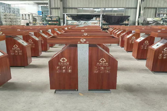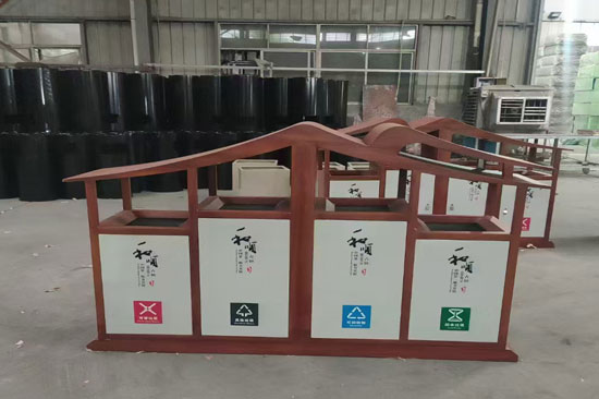 整體設(shè)計既體現(xiàn)了中國傳統(tǒng)文化的韻味,又不失現(xiàn)代感和實用性,是戶外環(huán)境中的一個亮點。這樣的垃圾桶不僅能夠有效收集垃圾,保持環(huán)境整潔,還能成為城市中一道亮麗的風(fēng)景線,提升公共空間的文化氛圍和藝術(shù)品味。